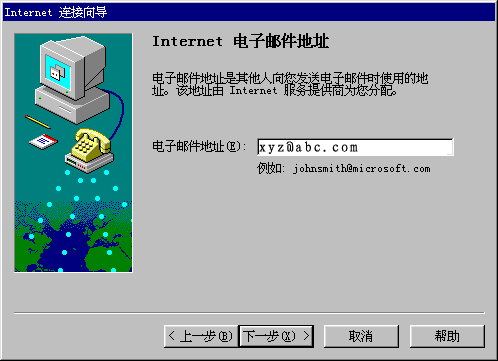 此处填写的是在Outlook express 中您的英文或者拼音名字。它并不影响您的任何工作,只是在您有多个邮箱时可以用来标识是哪个信箱。至此,您已经简单的设置完您的一个信箱。再进行简单的几步设置,就可以开始使用信箱了。